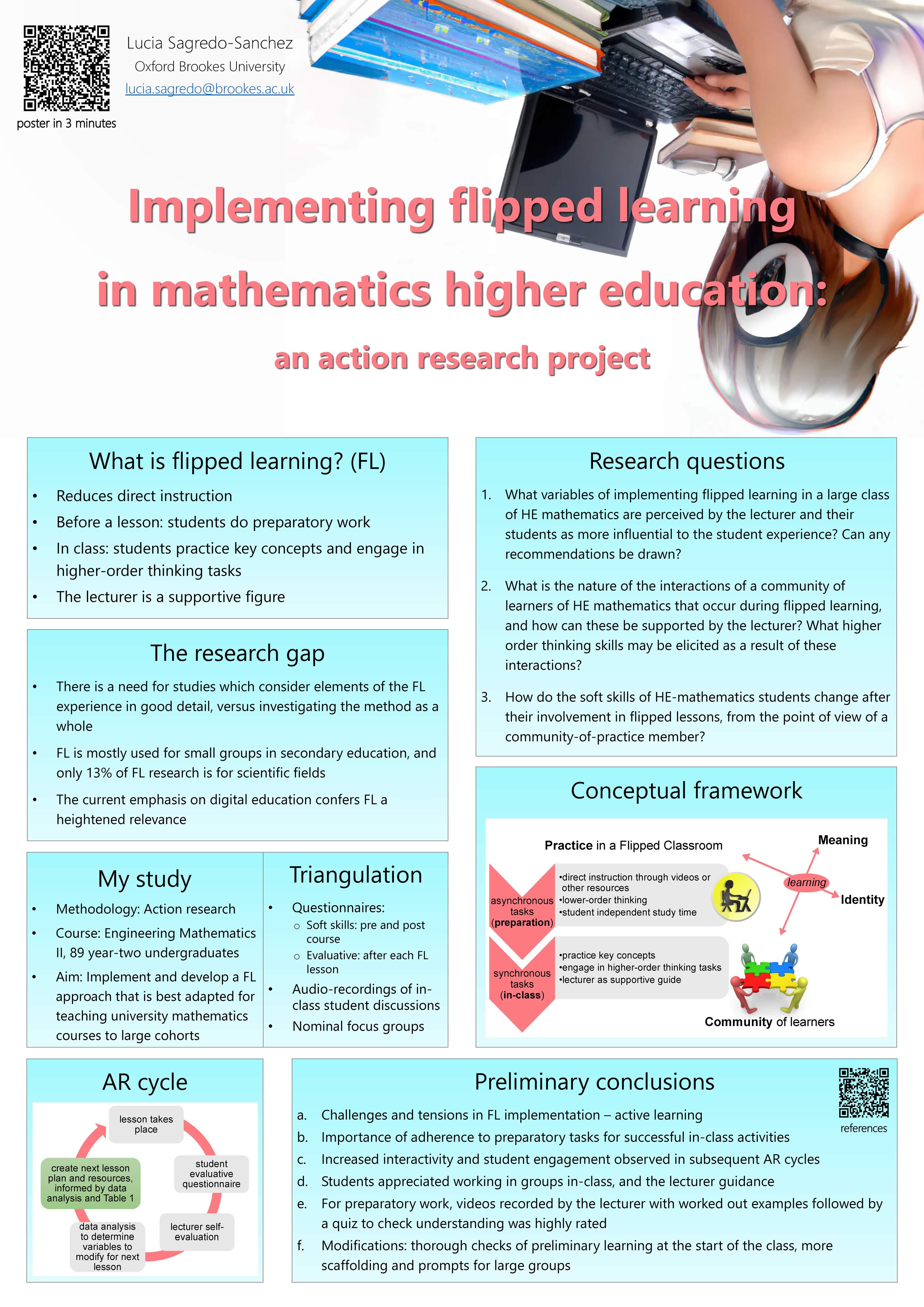 A researcher has facilitated a group of 3 teachers doing action research in their classrooms. The researcher acts as the chair and explains the context of the project and how the 3 presentations relate to each other.