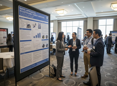 During the dedicated poster exhibition sessions on each day, you are encouraged to be with your poster as delegates move around the room to view all the posters on display. Hopefully your poster attracts interest and delegates come across to look at it in more detail. These exhibition sessions provide an opportunity for you to discuss your work, get feedback and interact with interested delegates, if you wish to. It can be useful to prepare a brief (1 or 2 minute) overview of the work that you can say when you are approached, or consider some questions that you could ask if you want feedback on a specific aspect of your work.